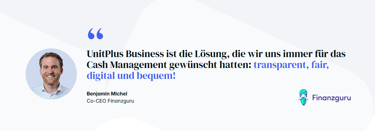 UnitPlus Business* ist eine innovative Lösung für das Cash-Management, die ungenutzte Firmenliquidität so rentabel und sicher anlegt wie große DAX-Konzerne – jedoch zu einem Bruchteil der Kosten.